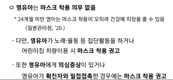 먼저 영유아는 마스크 착용 의무가 없습니다.
