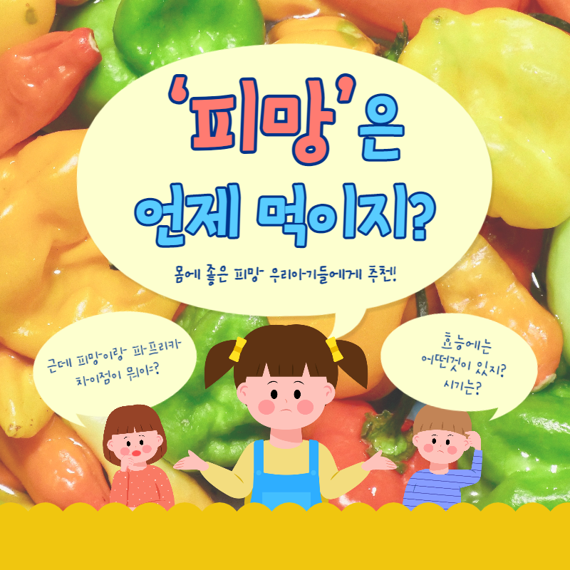 피망과 파프리카는 우리가 흔히 접하게 되는 음식 재료인데요. 몸에 좋은 것은 당연하고 어느 음식에나 잘 어울려 사랑받는 재료입니다. 그렇다면 우리 아기들은 이렇게 좋은 재료를 언제 줘야 할지, 알레르기는 없는지, 그리고 피망과 파프리카 차이에 대해서도 간략하게 알아가는 시간을 가져볼게요.