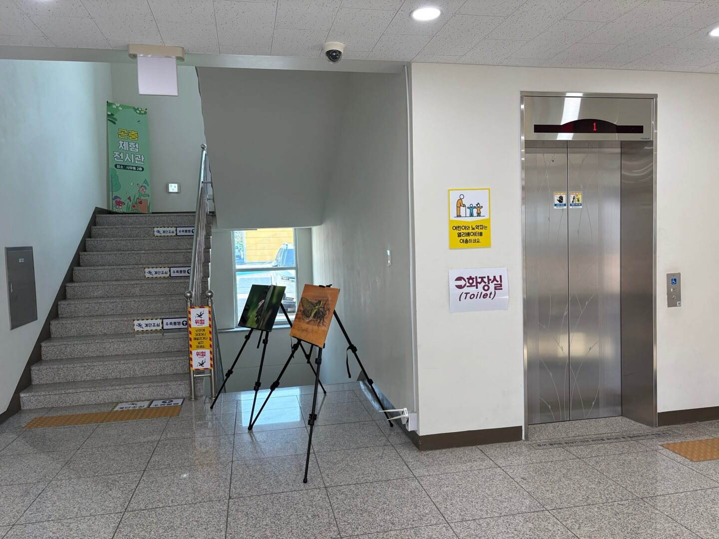 2층으로 올라가는 계단이랑 엘리베이터를 마주하게 됩니다.