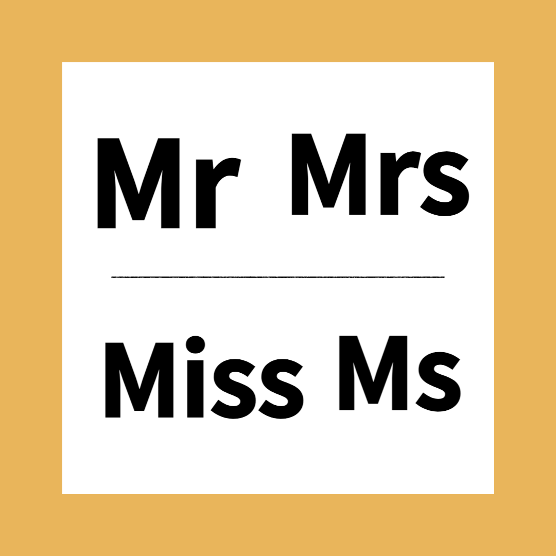 즉 Mr. 는 모든 남성에게 결혼여부, 나이에 상관없이 부르는 호칭이고, 나머지 세 개 Miss. / Mrs. / Ms. 는 여성에게 쓰는 호칭입니다.